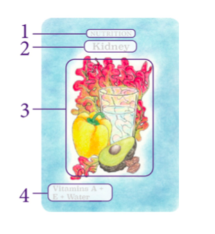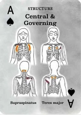 The orange/yellow points on each Structure card represent neurolymphatic reflex points. Rubbing them helps ease congestion, boost lymph flow, increase energy, and bring harmony to the body. Watch this video to see how it’s done.